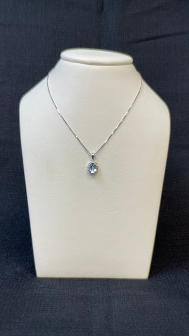 Fancy Cut Oval Aquamarine / Diamond Halo Necklace