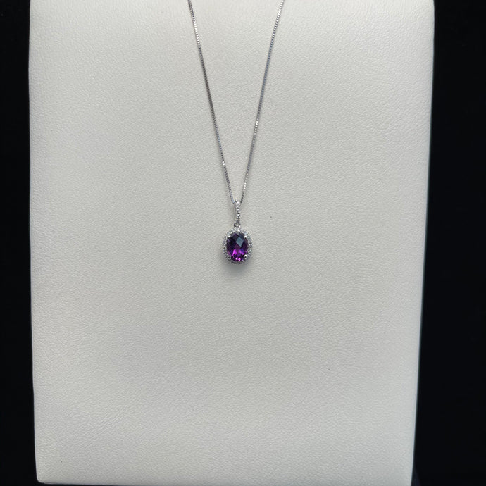 Fancy Cut Oval Amethyst w/ Diamond Halo Necklace