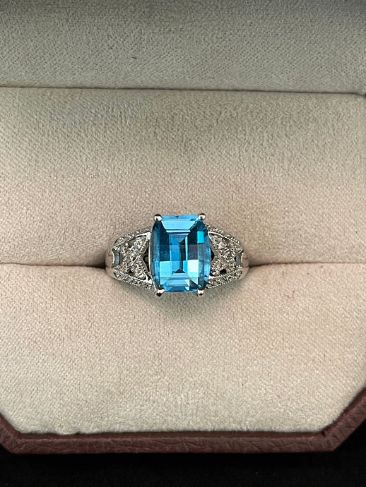 Fancy Cut Blue Topaz w/ Diamond Ring