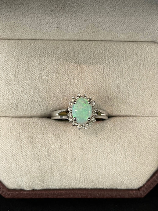 Oval Opal w/ Diamond Halo Ring