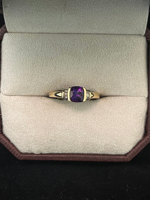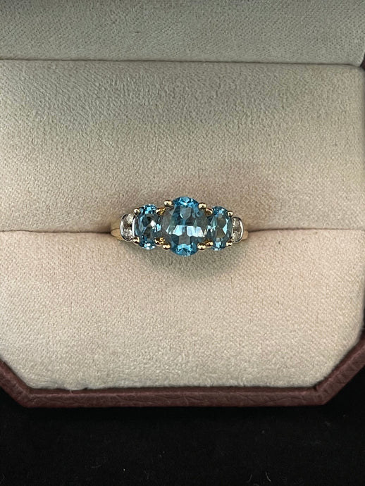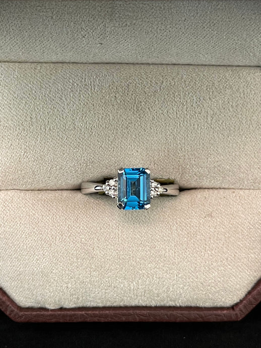 Emerald Cut Blue Topaz w/ Diamond Ring