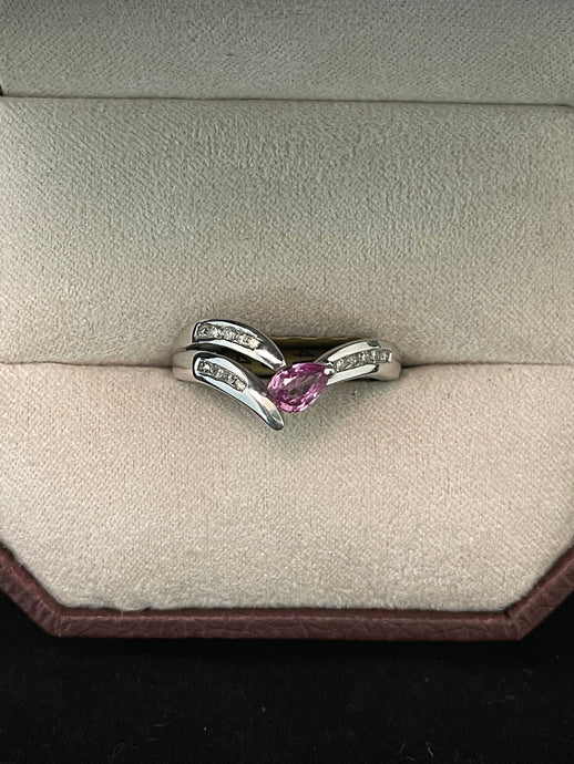 Pear Shape Pink Sapphire w/ Diamond Ring
