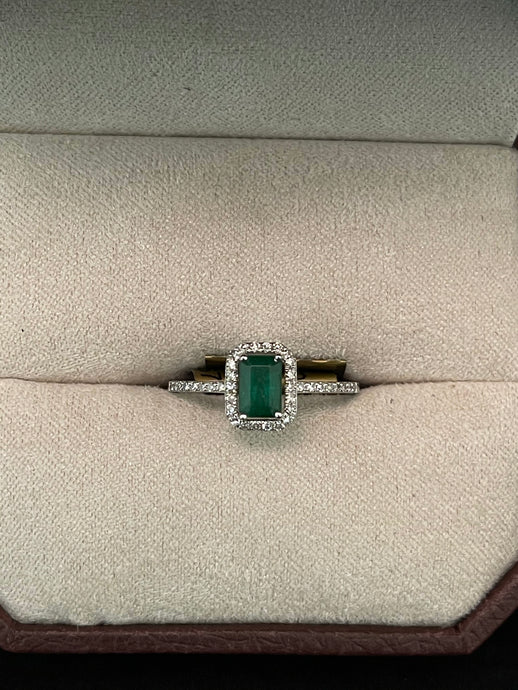 Emerald Cut Emerald w/ Diamond Halo Ring