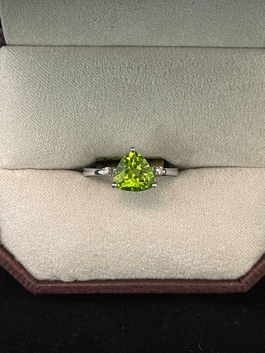 Trillion Cut Peridot w/ Diamond Accents Ring