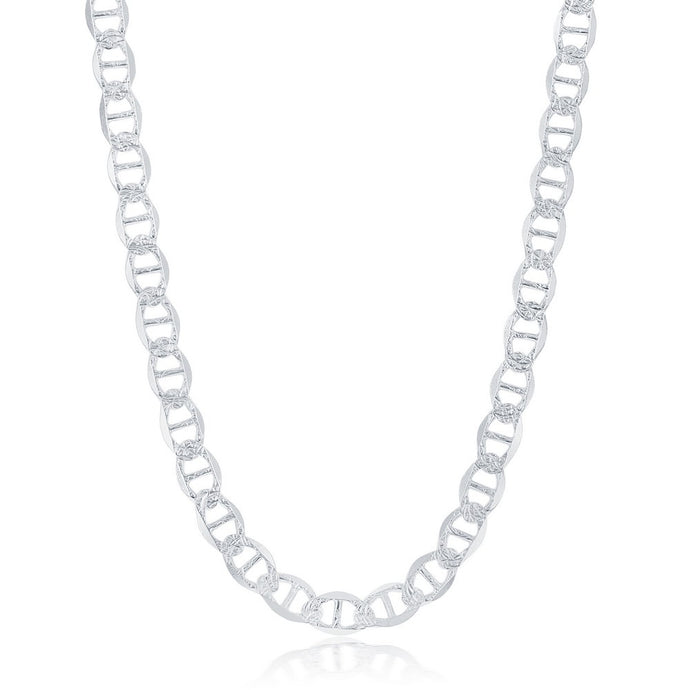 Sterling Silver Rhodium Plated Diamond Cut Marina Link Chain