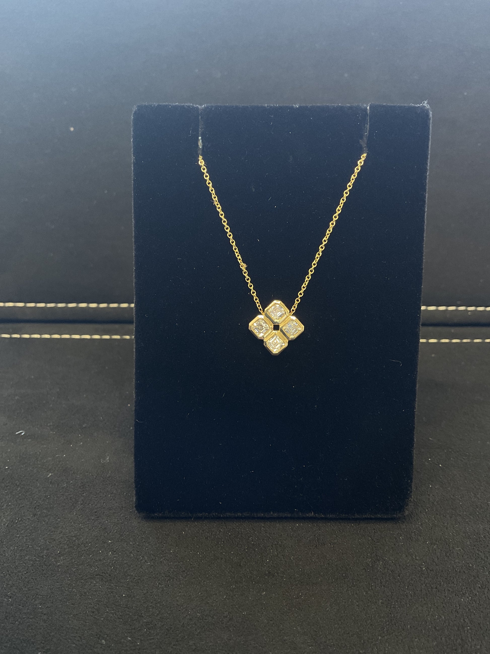 Ascher Cut Diamond Bezel Set 4 Side Necklace