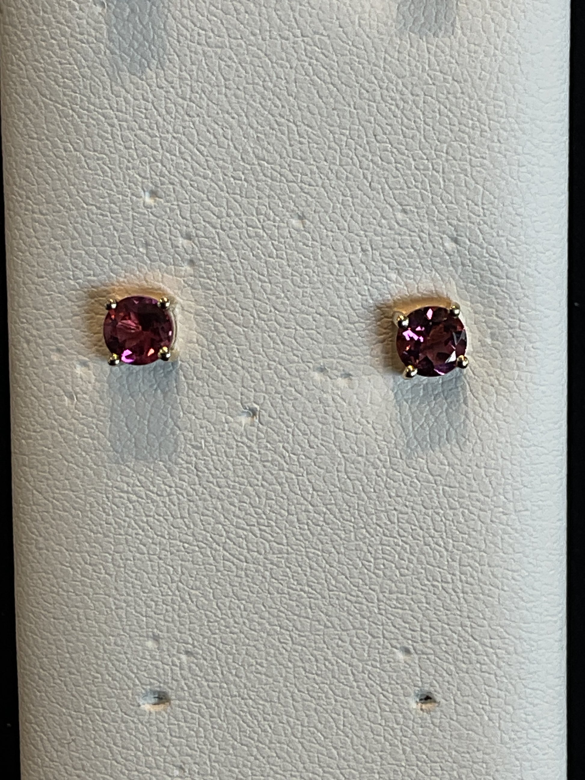 Round Cut Pink Tourmaline Prong Set 14KT Yellow Gold Stud Earrings