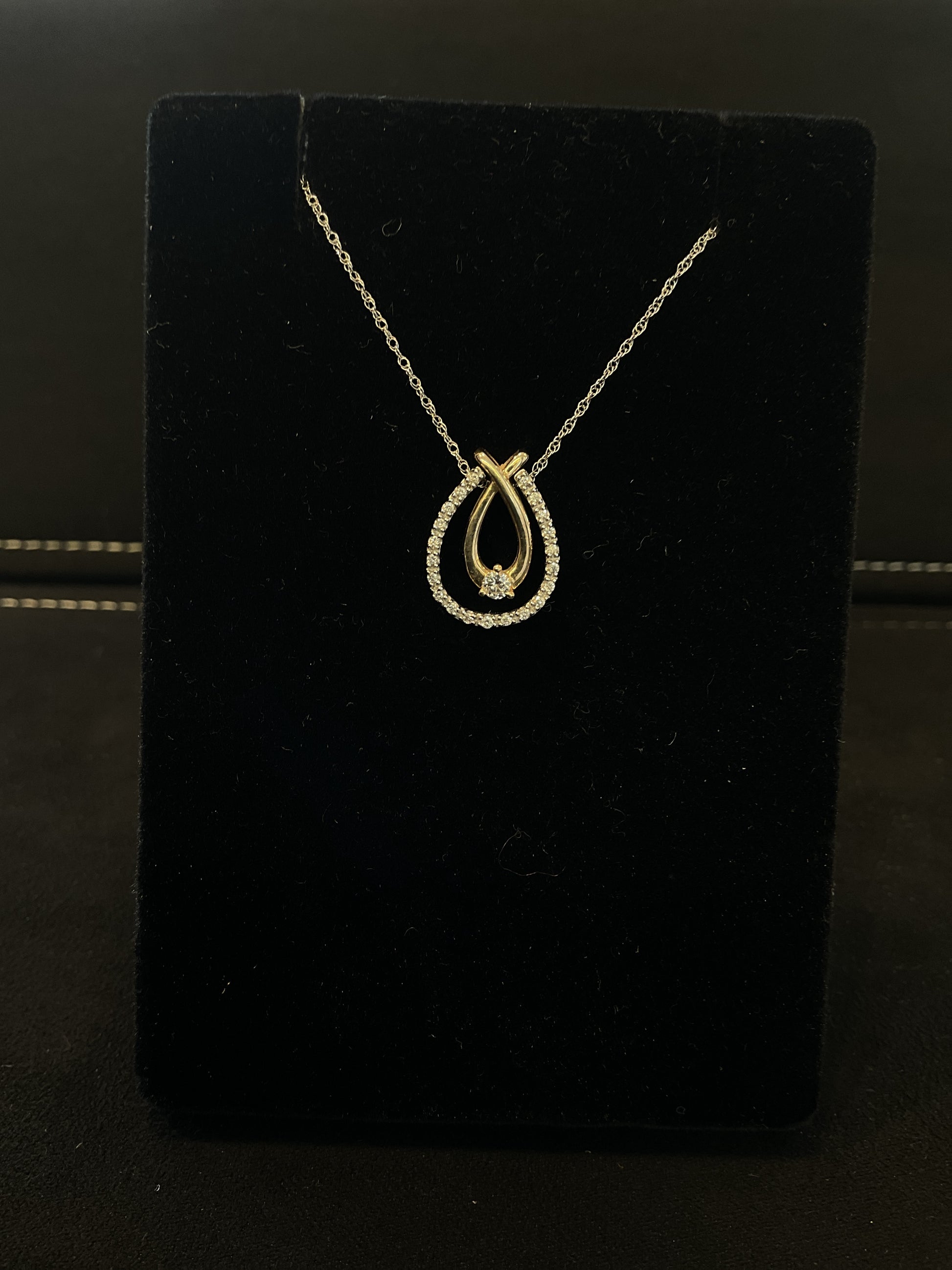 .13 CTW 10KT Two Tone Rose and White Gold Tear Drop Shape Round Brilliant Cut Diamond Necklace With Enhancer 18" Chain
