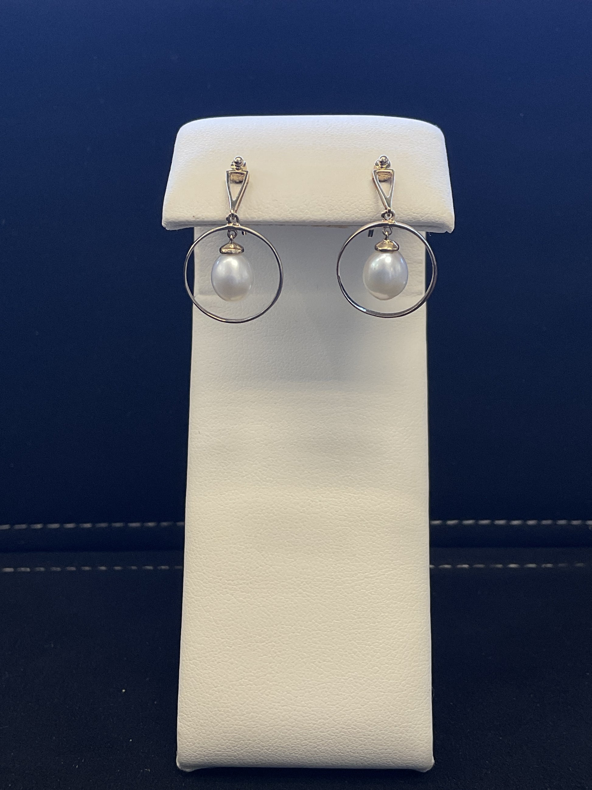 Freshwater Pearl Drop with Gold Polished Halo 14KT Yellow Gold Dangle Stud Earrings