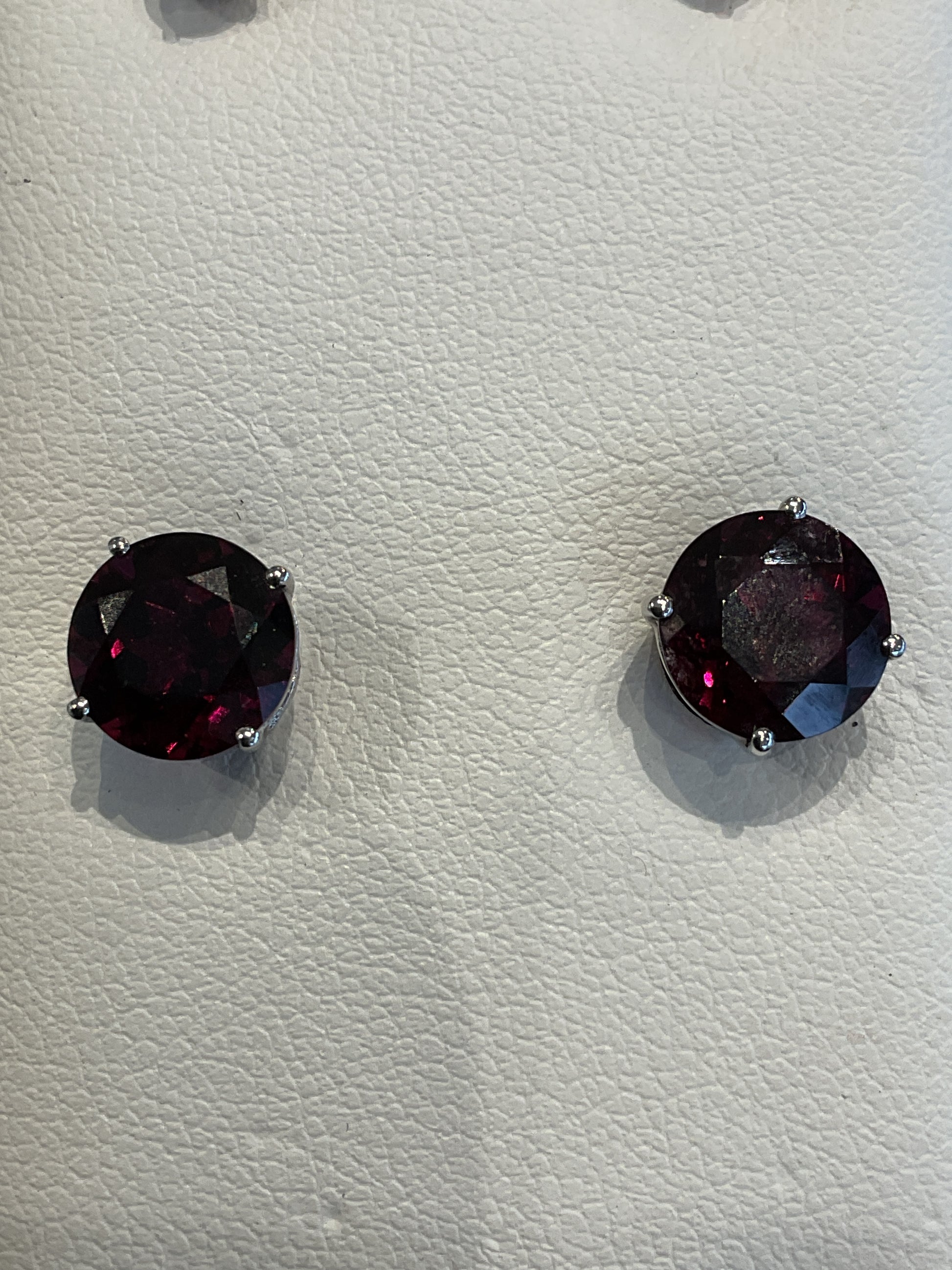 Round Cut Rhodolite Red Garnet Prong Set 14KT White Gold Stud Earrings