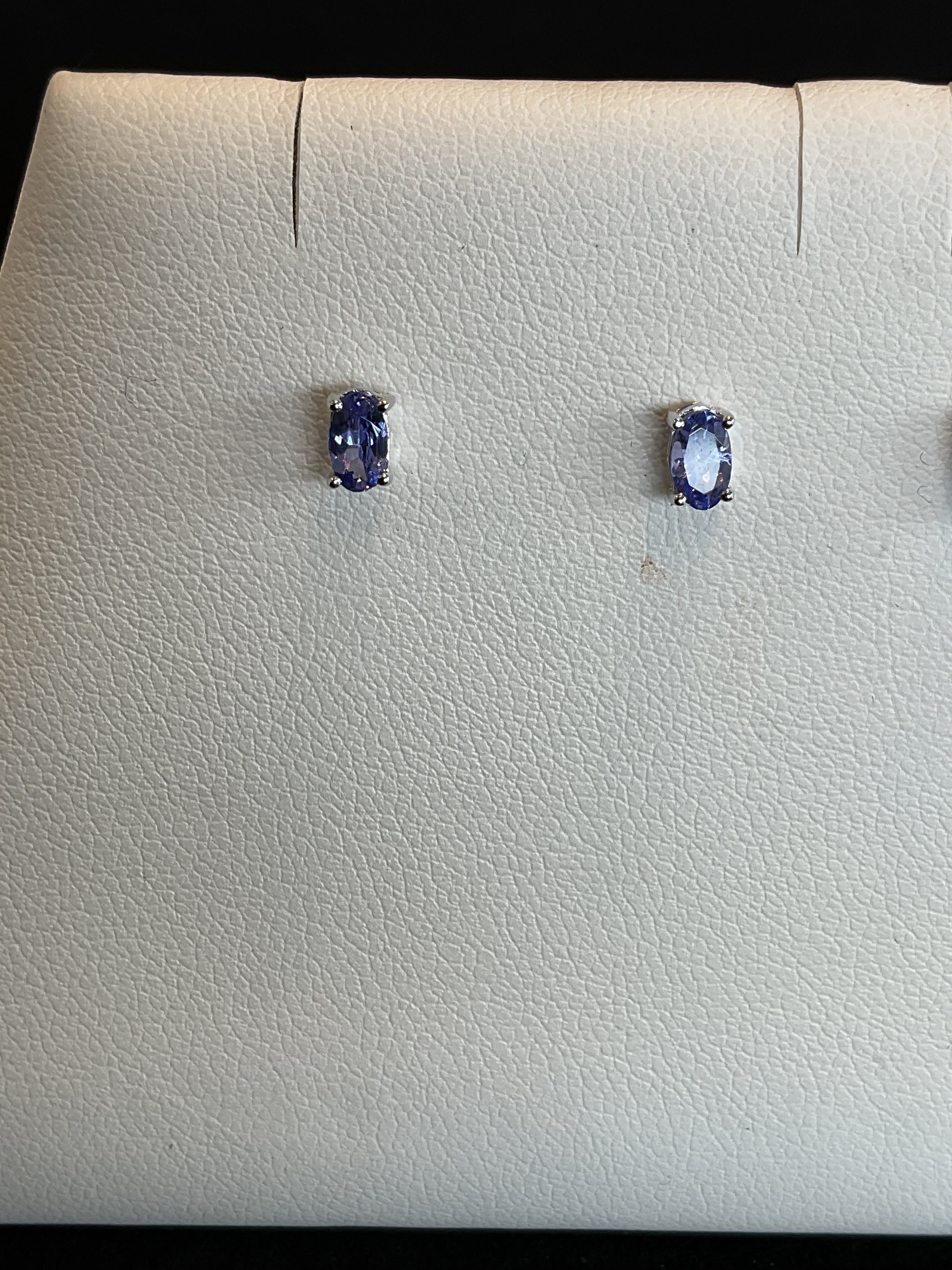 Oval Cut Tanzanite Prong Set 14KT White Gold Stud Earrings